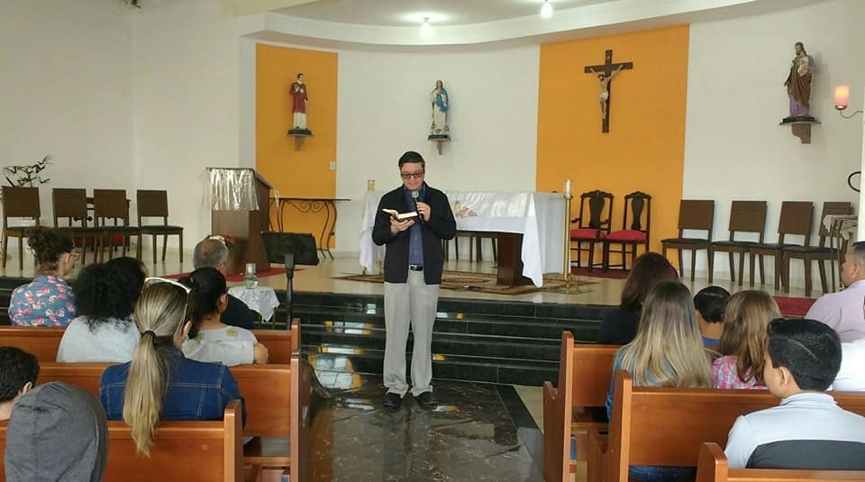 Em sua reflexão, destacou a importância do testemunho, do domingo como lugar do encontro da comunidade em torno da mesa da palavra e da eucaristia, da participação dos pais acompanhando seus filhos no exercício da fé.